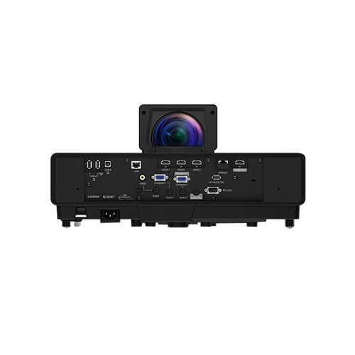 Users can benefit from multi-projector and daisy-chain support for built-in edge blending, or illuminate an entire wall with one huge image. Also, the split screen feature allows users to connect multiple input sources to display different content sources simultaneously. It can be mounted on the wall, ceiling, floor, or even hidden away to create added mystery. Its ultra-short-throw design enables projection of large images from a short distance. A white version is also available.