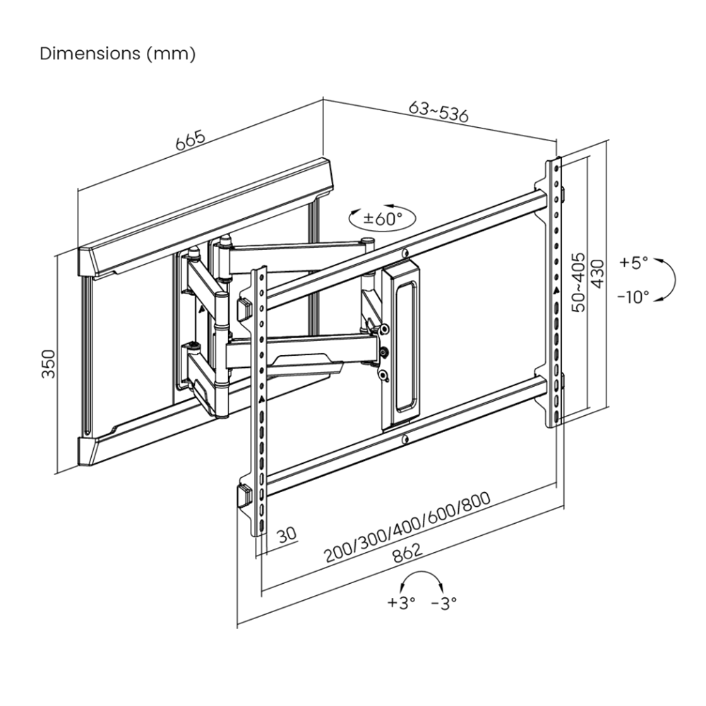 Upgrade your viewing experience with the Arkin Modern Design Full Motion TV Mount, designed to accommodate TVs ranging from 43" to 90" and weighing up to 60kg. Engineered for both functionality and style, this mount combines robust construction with thoughtful details for a seamless installation and optimal positioning.