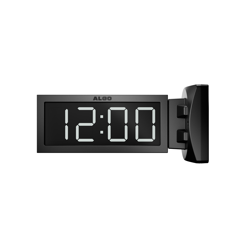Its white-on-black display improves visibility for users with color blindness and makes it easier to read than standard red LED clocks. The 8402 integrates easily with the Algo ecosystem, offering flexible configuration through a web interface and centralized control via the Algo 8300 or ADMP for remote monitoring and management.