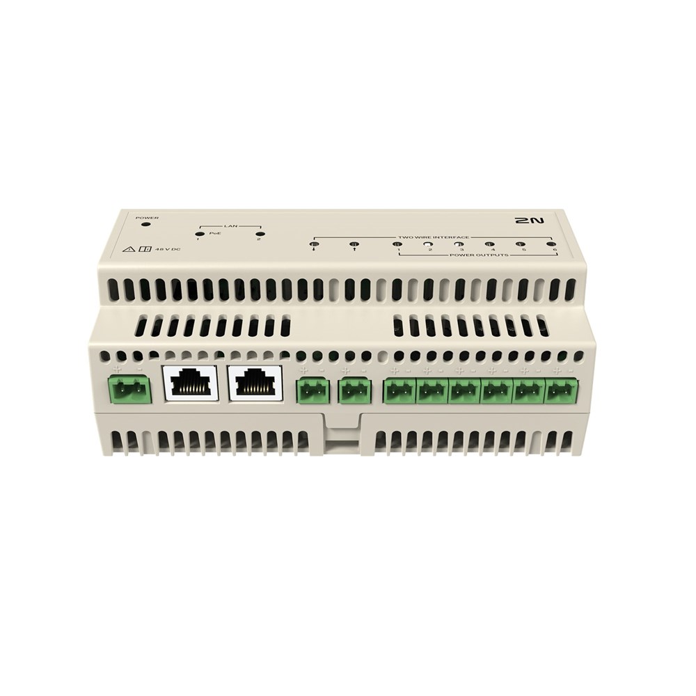 The switch is necessary for installing the 2N Clip 2wire-IP indoor station. You need one switch for each floor or every six 2N Clip 2wire-IP indoor stations. Conveniently, you can daisy-chain the switches to serve as many floors and apartments as needed.