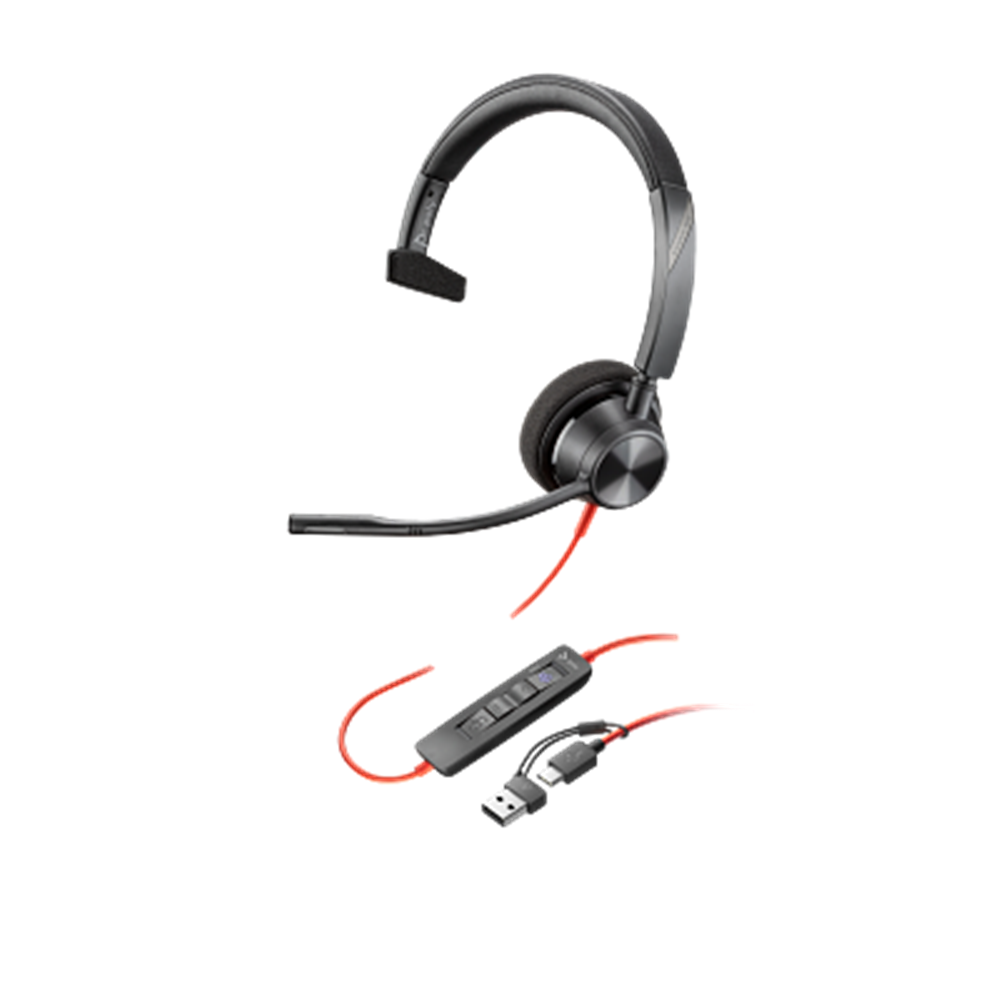 Poly Blackwire 3310 Monaural Microsoft Teams Certified USB-C Headset +USB-C/A Adapter