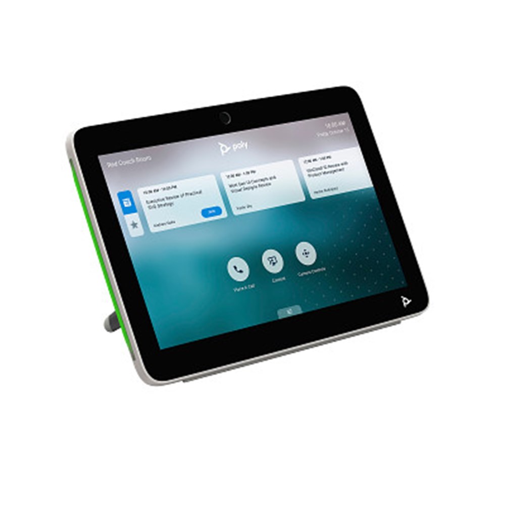 Launch, join, and share in an instant. The Poly TC8 touch control panel provides easy access to Poly video conferencing solutions. The 8-inch high-resolution touch display makes control options clear and accessible.