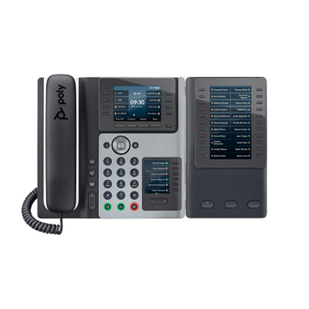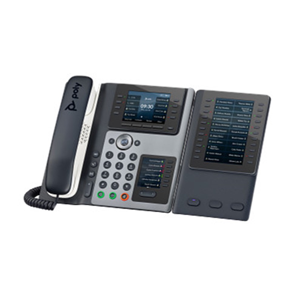 This versatile phone is outfitted with a bright 3.5-inch color IPS LCD display and shows your lines, features, contacts, and speed dials. What’s more, the Poly Edge E300 Series is designed to handle up to 32 lines to be more productive.