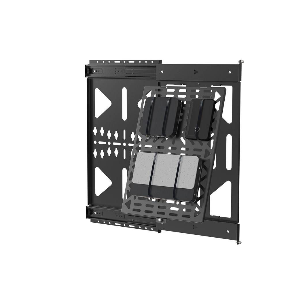 The Arkin AV Sliding Panel (AR-AV-PANEL) is designed to provide a discreet and organized solution for mounting AV connectivity devices such as video conferencing systems, mini PCs (NUCs), splitters, digital signage and media players, plus more. This innovative slide-out AV storage panel mounts behind your screen, keeping essential components accessible while maintaining a clean, clutter-free setup.