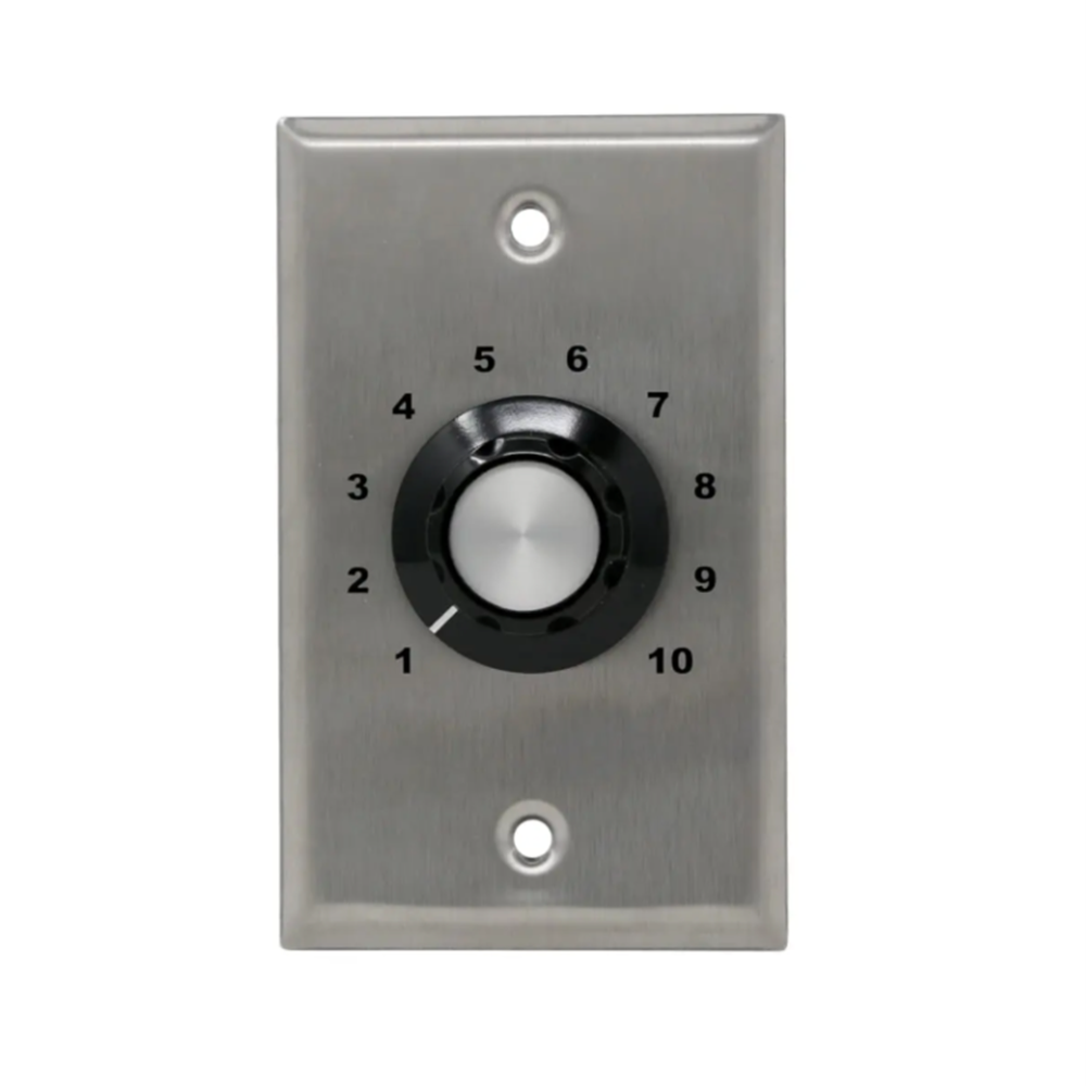 The 1204 Volume Control is a ten-position rotary control for Algo IP speakers and the 8301 IP paging adapter. Installed in a single gang face plate, the 1204 offers convenient wall mount adjustment of volume including muting. The accessory connects to the relay input of an Algo IP endpoint.