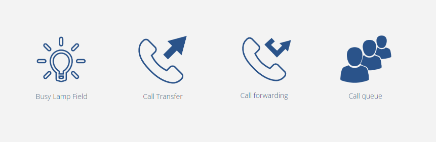 • BLA (bridged line appearance)/SCA (shared call appearance), BLF (busy lamp field, standard or eventlist), Call Park/Pick-up, Speed Dial, Presence, Intercom, and conference/ transfer/forward and more