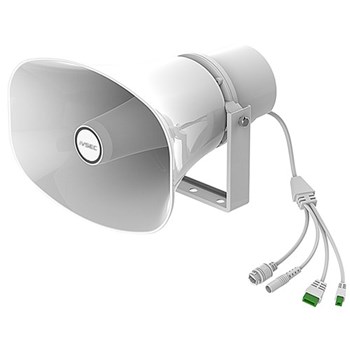 The iVSEC NS100YA is a commercial-grade IP horn speaker designed for public address, paging, and emergency broadcasting. Built for both indoor and outdoor use, it functions as a standalone audio terminal or integrates with broader communication and security systems for unified control.